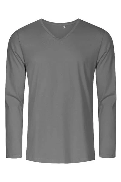 Langärmliges Single-Jersey-T-Shirt mit V-Ausschnitt und Stoffkragen aus gekämmter Baumwolle. Die besonders glatte Oberfläche und der fließende Stoff verleihen dem Jersey ein einzigartiges, elastisches und seidiges Finish. Das T-Shirt ist schmal geschnitten und mit Seitennähten versehen. Zertifiziert nach OEKO-TEX®