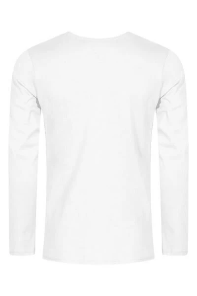 Langärmliges Single-Jersey-T-Shirt mit V-Ausschnitt und Stoffkragen aus gekämmter Baumwolle. Die besonders glatte Oberfläche und der fließende Stoff verleihen dem Jersey ein einzigartiges, elastisches und seidiges Finish. Das T-Shirt ist schmal geschnitten und mit Seitennähten versehen. Zertifiziert nach OEKO-TEX®