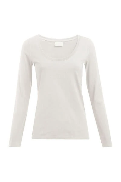 Modernes Langarm-Single-Jersey-Shirt mit Elasthan-Anteil in Rippbündchen hat einen weiten Halsausschnitt aus gekämmter Baumwolle mit Elasthan-Anteil für mehr Bewegungsfreiheit. Das Shirt hat eine körpernahe Passform und ist mit Seitennähten versehen. Zertifiziert nach OEKO-TEX®