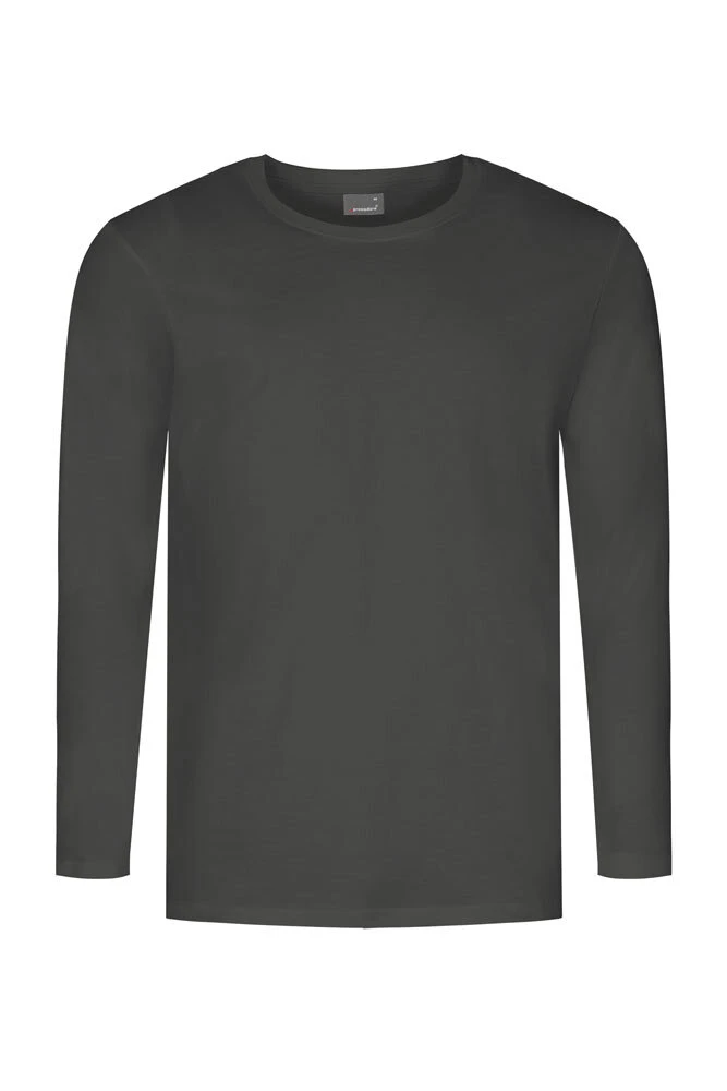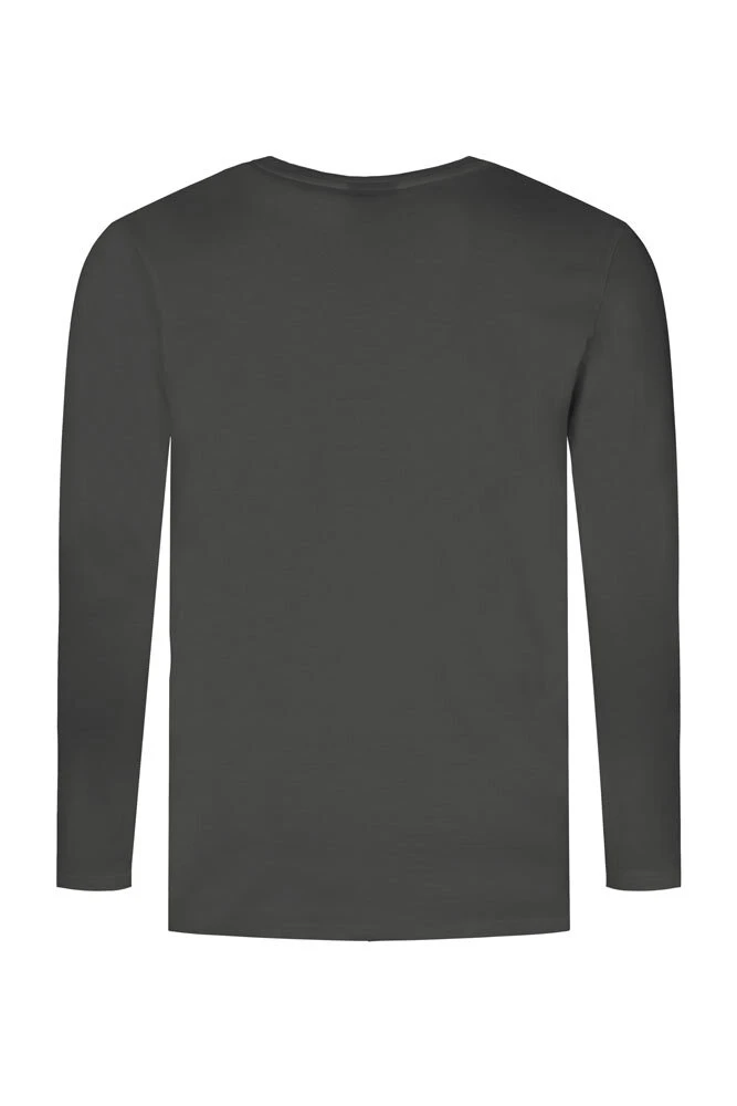 Klassisches Single-Jersey-Langarm-T-Shirt mit Elastan und kleinem geripptem Ausschnitt aus langstapeliger, gekämmter Baumwolle. Die besonders feine Oberfläche des T-Shirts eignet sich sehr gut für jegliche textile Modifikation. Das Langarm-T-Shirt ist modern geschnitten und besteht aus Schlauchstoff. Zertifiziert nach OEKO-TEX®