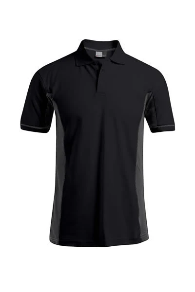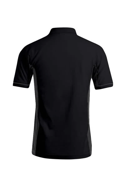 Das funktionelle Interlock-Polo besteht aus einem Mischgewebe in Piqué-Optik mit einer Knopfleiste und drei Ton-in-Ton-Knöpfen. Die Polomanschetten sind mit Paspeln, Seitenfalten in Kontrastfarbe und Seitenschlitzen versehen. Besonderheiten dieses Bereichs: hautfreundlich, schnell trocknend, schweißabsorbierend. Das Polo hat einen modernen Schnitt.