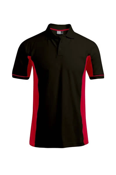 Das funktionelle Interlock-Polo besteht aus einem Mischgewebe in Piqué-Optik mit einer Knopfleiste und drei Ton-in-Ton-Knöpfen. Die Polomanschetten sind mit Paspeln, Seitenfalten in Kontrastfarbe und Seitenschlitzen versehen. Besonderheiten dieses Bereichs: hautfreundlich, schnell trocknend, schweißabsorbierend. Das Polo hat einen modernen Schnitt.
