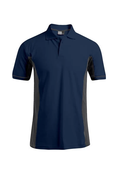 Das funktionelle Interlock-Polo besteht aus einem Mischgewebe in Piqué-Optik mit einer Knopfleiste und drei Ton-in-Ton-Knöpfen. Die Polomanschetten sind mit Paspeln, Seitenfalten in Kontrastfarbe und Seitenschlitzen versehen. Besonderheiten dieses Bereichs: hautfreundlich, schnell trocknend, schweißabsorbierend. Das Polo hat einen modernen Schnitt.