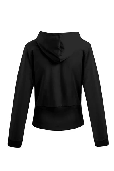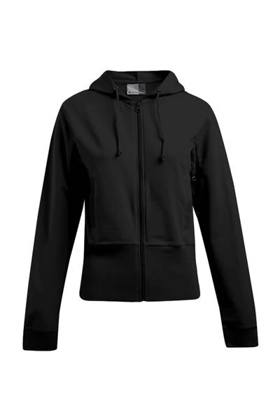 Modernes Molton-Sweatshirt mit Kapuze, ungebürstet, hat durchgehenden Kunststoff-Reißverschluss im Ton, außerdem Elasthan-Bündchen an Ärmeln und Saum. Das Sweatshirt hat eine weite Satteltaille, gerippte Zwickelschlaufen und Vordertaschen mit kontrastierenden Rippen. Das Sweatshirt besteht aus gekämmter Baumwolle mit Elasthan-Anteil für mehr Bewegungsfreiheit und ist figurbetont geschnitten.
