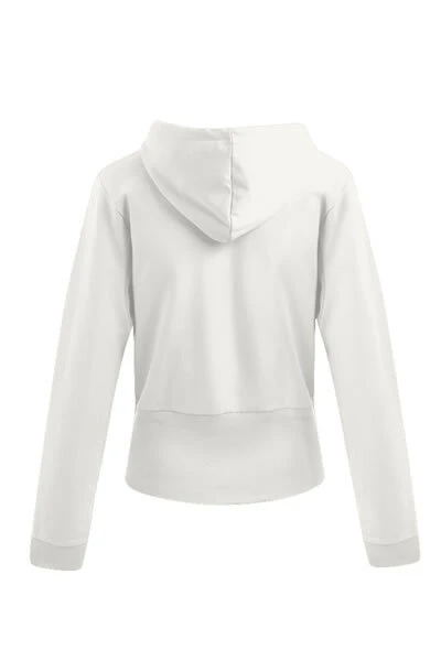 Modernes Molton-Sweatshirt mit Kapuze, ungebürstet, hat durchgehenden Kunststoff-Reißverschluss im Ton, außerdem Elasthan-Bündchen an Ärmeln und Saum. Das Sweatshirt hat eine weite Satteltaille, gerippte Zwickelschlaufen und Vordertaschen mit kontrastierenden Rippen. Das Sweatshirt besteht aus gekämmter Baumwolle mit Elasthan-Anteil für mehr Bewegungsfreiheit und ist figurbetont geschnitten.