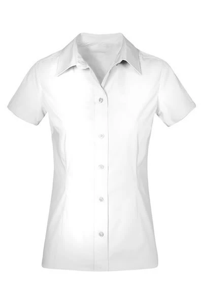 Ein klassisches Kurzarmhemd aus Popeline-Mischgewebe mit verstärktem Kentkragen und farblich abgestimmter Knopfleiste sowie einer separaten Brusttasche mit Ersatzknöpfen. Besonderheiten dieses Shirts: pflegeleichtes Mischgewebe, Abnäher vorne und hinten, doppelter Rückensattel, abgerundeter Saum, aus gekämmter Baumwolle mit Polyester. Das Shirt hat einen modernen Schnitt.