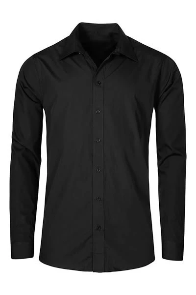 Ein klassisches Langarmhemd aus Popeline-Mischung mit verstärktem Kentkragen und Knopfleiste mit farblich abgestimmten Knöpfen sowie einer separaten Brusttasche und Ersatzknöpfen. Besonderheiten dieses Hemdes: 2-Knopf-verstellbare Manschette (Tonnenmanschette), lange Ärmelleiste mit Knopf, doppelter Rückensattel, umgeschlagener Saum, aus gekämmter Baumwolle mit Polyester. Das Hemd ist modern