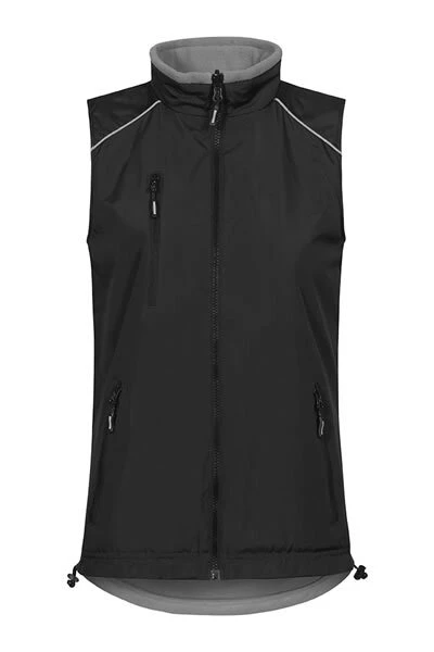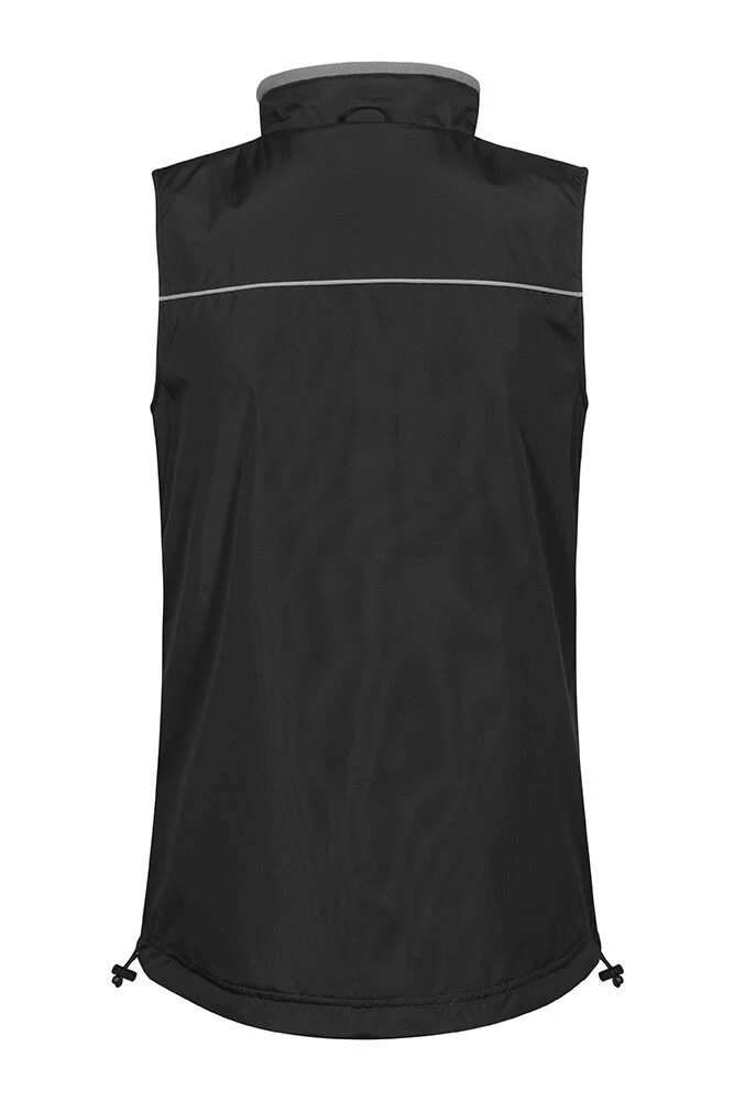 Die Wendeweste verfügt über einen Stehkragen, eine Napoleontasche vorne, zwei Seitentaschen mit Reißverschluss vorne/innen, einen eingenähten Schlüsselring in der Seitentasche, reflektierende Paspeln und Reißverschlussschieber. Die Weste hat einen Tunnelzug am Saum mit Stiel, einen abgerundeten Saum, einen unsichtbaren Reißverschluss zur Dekoration und einen modernen Schnitt.