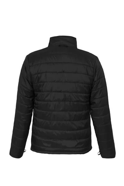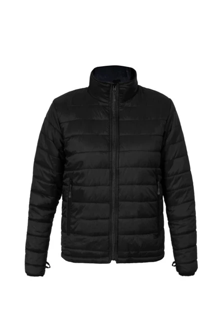 Die Steppjacke verfügt über einen Stehkragen, einen durchgehenden Reißverschluss, zwei seitliche Reißverschlusstaschen, einen Jackenverschluss und ein neutrales Größenetikett. Die Jacke besticht durch ihren sportlichen Schnitt und besteht aus Nylon (Außen-/Innenmaterial) und Polyester (Wattierung).