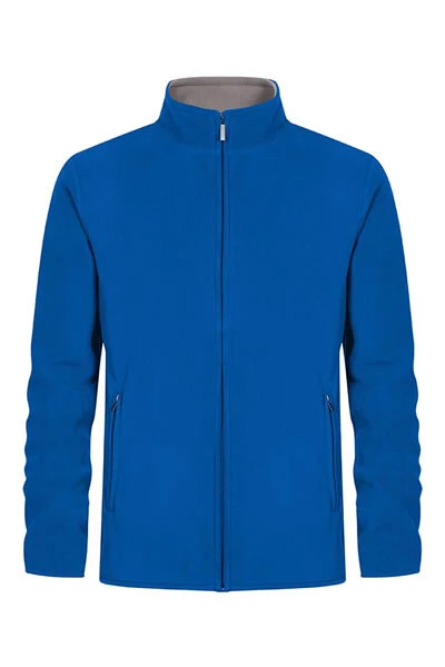 Die zweireihige Fleecejacke verfügt über einen durchgehenden verdeckten Reißverschluss, schmale Ärmelbündchen mit elastischem Saum und zwei seitliche Reißverschlusstaschen. Die Innenseite der Jacke ist in einer Kontrastfarbe gehalten und besteht aus Polyester mit beidseitiger Antipilling-Behandlung. Die Fleecejacke ist schmal geschnitten.