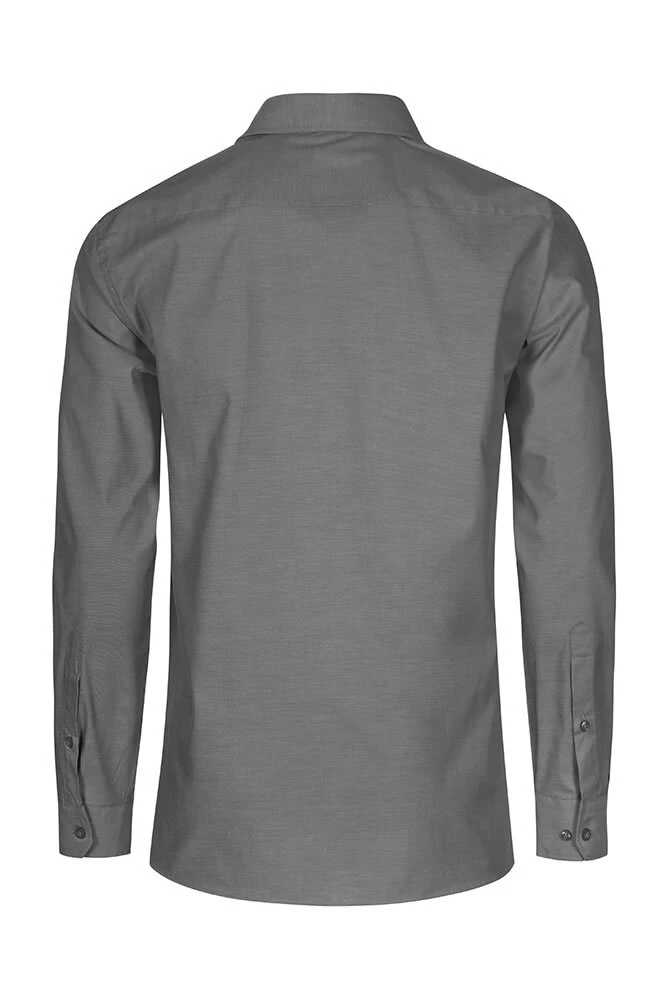 Ein klassisches Langarm-Oxford-Mischhemd mit verstärktem Kentkragen und Ton-in-Ton-Knopfleiste sowie einer separaten Brusttasche mit Ersatzknopf. Besonderheiten dieses Shirts: pflegeleichtes Mischgewebe, Abnäher vorne und hinten, doppelter Rückensattel, abgerundeter Saum, aus gekämmter Baumwolle mit Polyester. Das Shirt hat einen modernen Schnitt.