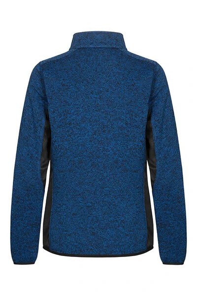 Die kontrastierende Strickfleece-Stehjacke ist innen gekämmt, hat Seiten- und Ärmeleinsätze sowie einen schmalen Saum unten am Körper und an den Ärmeln mit elastischem Einfassband, ebenfalls in Kontrastfarben. Die Jacke besteht aus Polyester und ist schmaler geschnitten.
