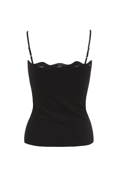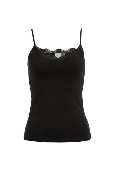 Modisches Single-Jersey-Top mit Spitzenbesatz und verstellbaren Spaghettiträgern aus einer Baumwollmischung mit Elasthan für zusätzlichen Komfort. Das Oberteil ist modern geschnitten und mit Seitennähten versehen.