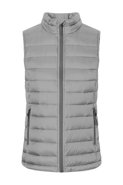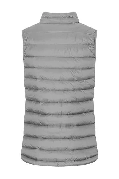 Gepolsterte Weste. Ausstattung: wasserdichte Reißverschlüsse, Stehkragen, Kinnschutz, Innentasche, durchgehender Reißverschluss, zwei seitliche Reißverschlusstaschen, Tunnelzug am Saum mit Innensteg, unsichtbarer Reißverschluss zur Verschönerung, neutrales Größenetikett. Die Weste besteht aus Nylon (Außen-/Innenmaterial) und Polyester (Wattierung). Die Weste hat einen modernen Schnitt.