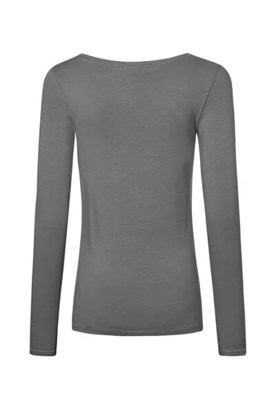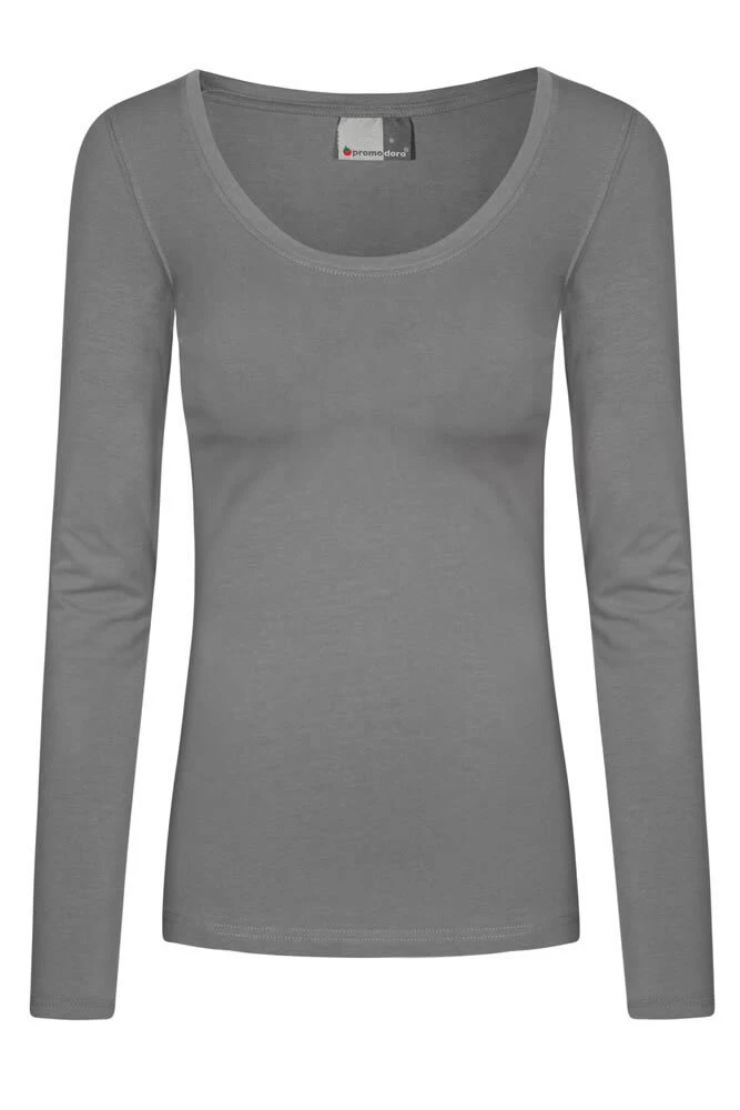 Modernes Langarm-Single-Jersey-Shirt mit Elasthan-Anteil in Rippbündchen hat einen weiten Halsausschnitt aus gekämmter Baumwolle mit Elasthan-Anteil für mehr Bewegungsfreiheit. Das Shirt hat eine körpernahe Passform und ist mit Seitennähten versehen. Zertifiziert nach OEKO-TEX®