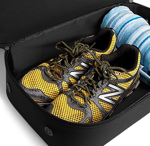 Vordertasche kann einfach verziert werden, So gestaltet, um in die meisten Schließfächer zu passen, Dualfach-Design, Mehrfach unterteiltes, belüftetes Bodenfach, Lüftungsösen, Innentasche für Wertsachen, Seitentaschen mit Reißverschluss, Netztaschen Innen, Schützende Plastikfüße, Verstellbarer, abnehmbarer Schulterriemen, Gepolsterter Griff; Maße: 44 x 39 x 27 cm; Fassungsvermögen: 40 Liter