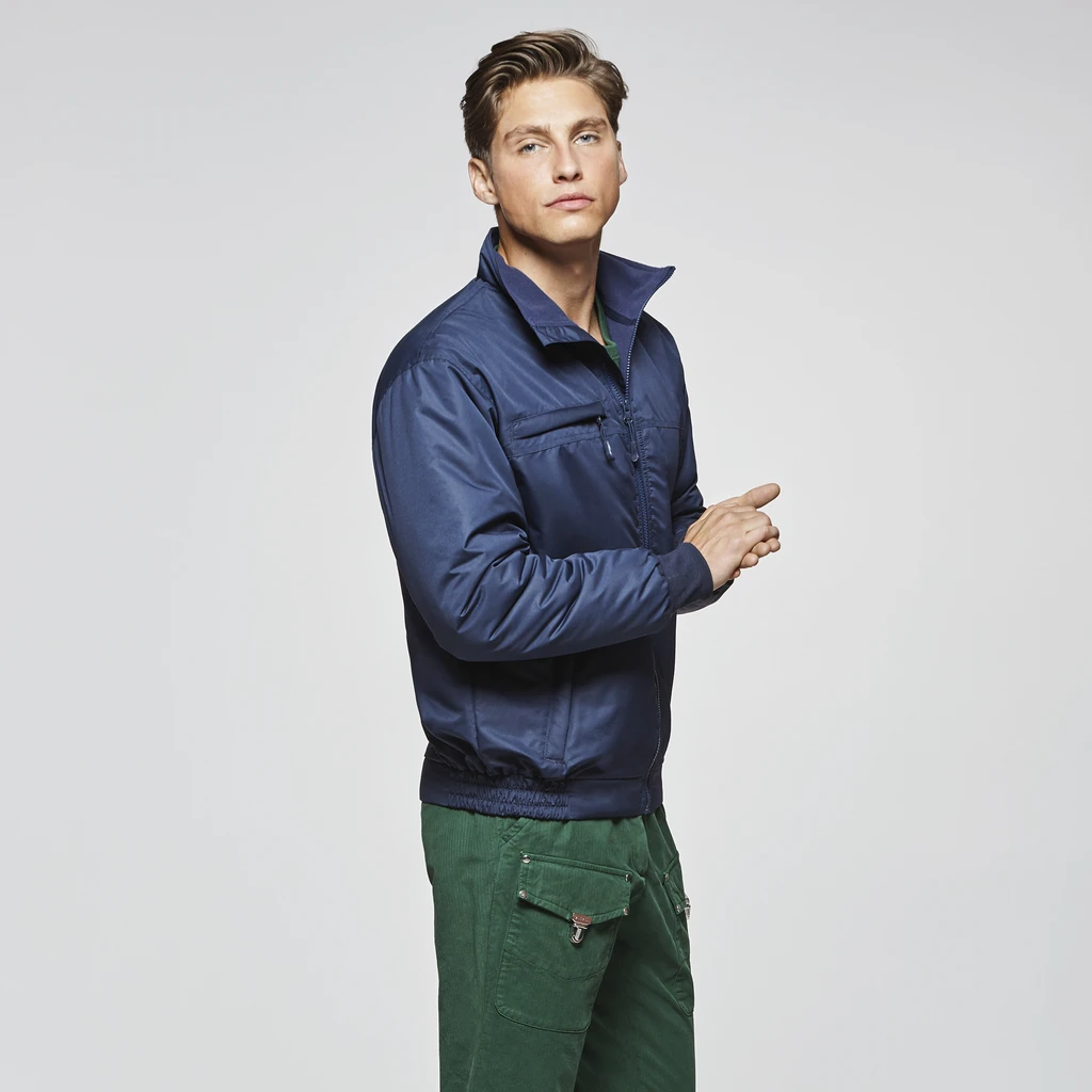 Komfortable und gefütterte Jacke mit festem Gewebe und Rollkragen.