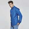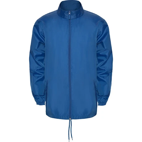 Regenjacke mit hohem Kragen und durchgehendem Reißverschluss.