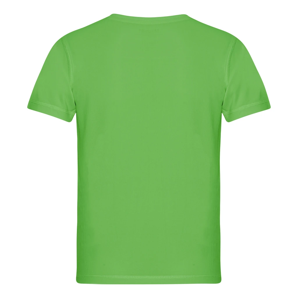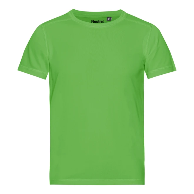 Normal geschnittenes Single-Jersey-T-Shirt mit kurzen Ärmeln und Quick Wick-Funktion. Rundhalsausschnitt mit doppellagigem Elasthan-Rippstrick und Nackenband innen. Mit Flatlock-Nähten an Schultern, Ärmeln und Saum. 155 g/m² leichte Qualität, hergestellt aus 100 % recyceltem Polyester.