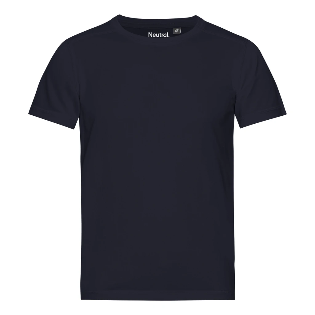Normal geschnittenes Single-Jersey-T-Shirt mit kurzen Ärmeln und Quick Wick-Funktion. Rundhalsausschnitt mit doppellagigem Elasthan-Rippstrick und Nackenband innen. Mit Flatlock-Nähten an Schultern, Ärmeln und Saum. 155 g/m² leichte Qualität, hergestellt aus 100 % recyceltem Polyester.