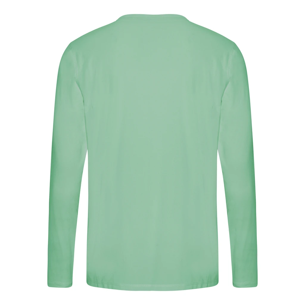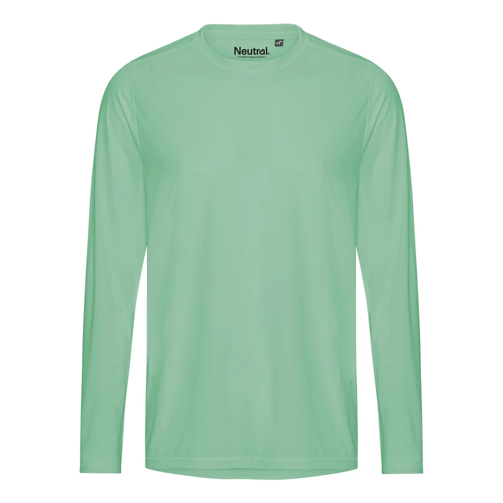 Normal geschnittenes Single-Jersey-Langarm-T-Shirt mit Quick Wick-Funktion. Rundhalsausschnitt mit doppellagigem Elasthan-Rippstrick und Nackenband innen. Mit Flatlock-Nähten an Schultern, Ärmeln und Saum. 155 g/m² leichte Qualität, hergestellt aus 100 % recyceltem Polyester.