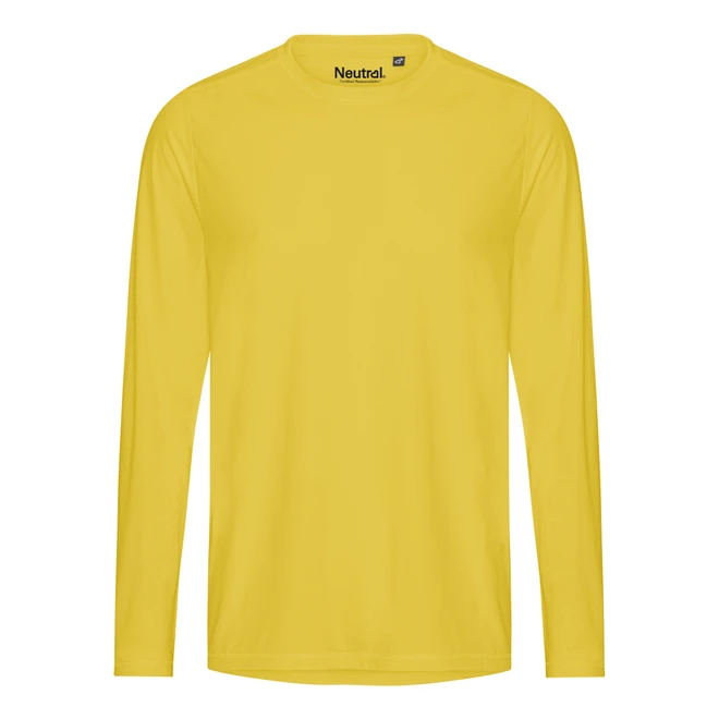 Normal geschnittenes Single-Jersey-Langarm-T-Shirt mit Quick Wick-Funktion. Rundhalsausschnitt mit doppellagigem Elasthan-Rippstrick und Nackenband innen. Mit Flatlock-Nähten an Schultern, Ärmeln und Saum. 155 g/m² leichte Qualität, hergestellt aus 100 % recyceltem Polyester.