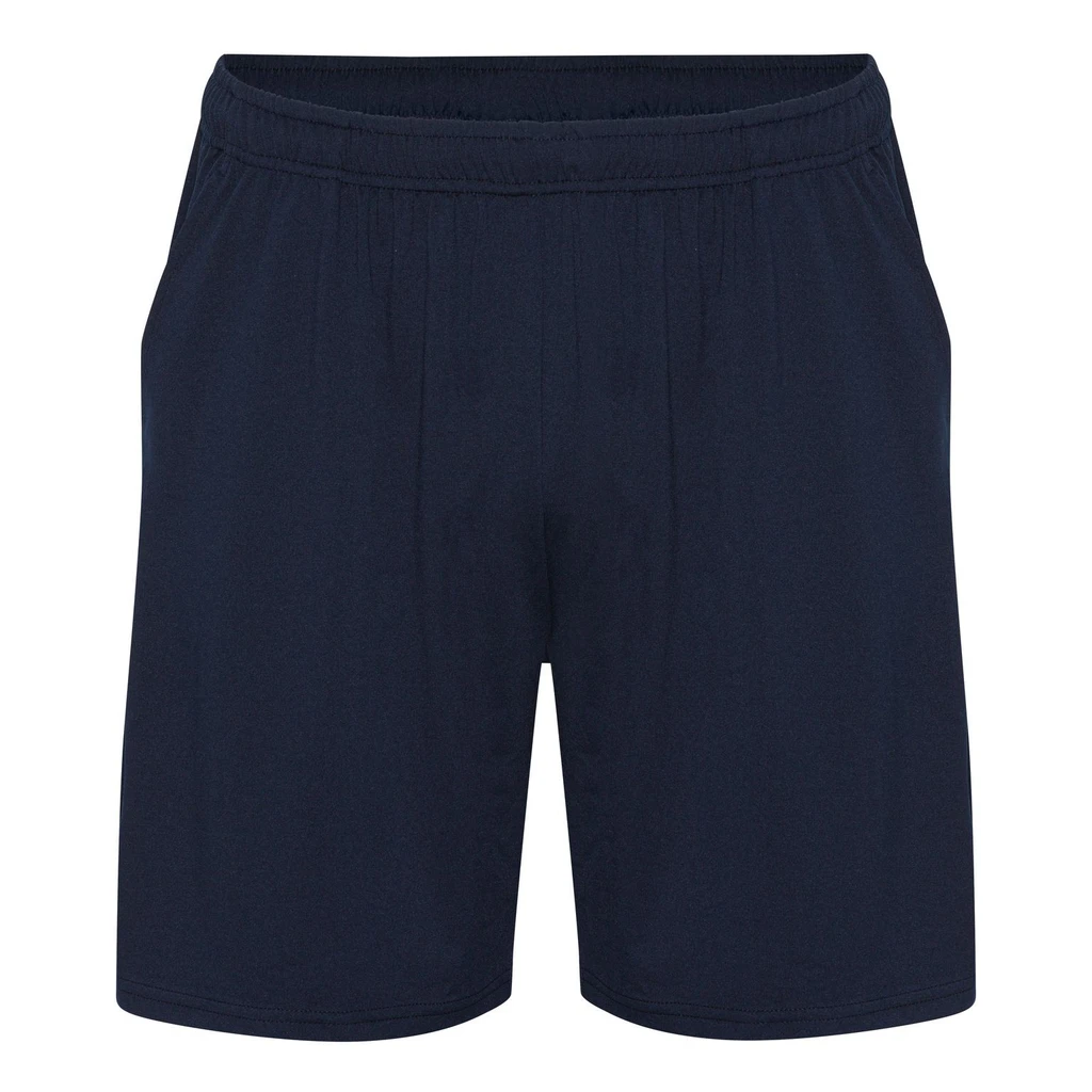 Unisex-funktionale Single-Jersey-Shorts mit elastischem Bund und verstellbaren Kordelzügen im Bund. Es verfügt über eine Quick Wick-Funktion, Seitentaschen, einen kleinen Seitenschlitz und kein inneres Netz. Leichte Qualität 155 g/m2, hergestellt aus 100 % recyceltem Polyester.