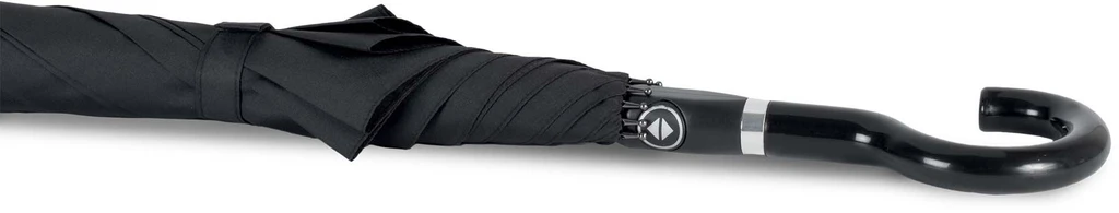 Regenschirm mit Gleitmechanismus (58,5 cm), automatische Öffnung, Metallstock, Glasfaserstreben und -spitzen, stoßdämpfende Kappe. Bezug aus 190T-Polyesterpongé. Aufgrund des Gleitmechanismus ist er Regenschirm geöffnet 95 cm, geschlossen 85 cm lang. Ø 98 cm