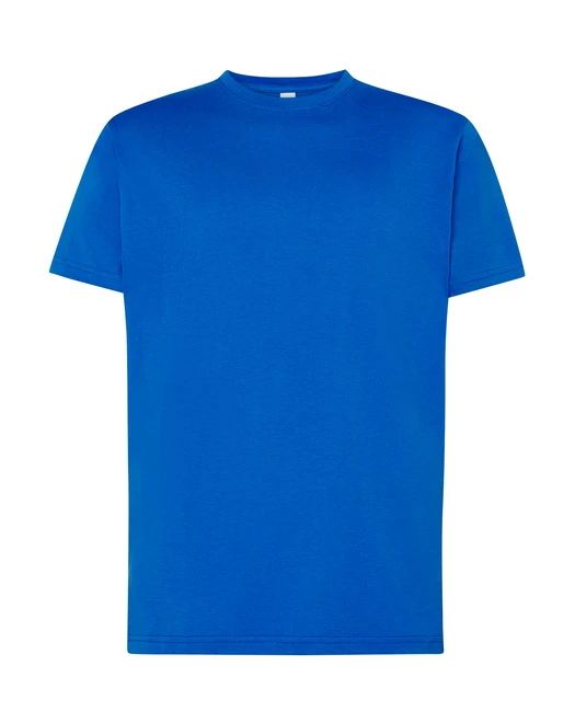 Kurzärmliges gekämmtes Baumwoll-T-Shirt für Männer. Erhältlich in 12 Farben und von Größe S bis 3XL. Abnehmbarer Aufkleber. Ideales T-Shirt zum Screenen oder Personalisieren mit Transfer.