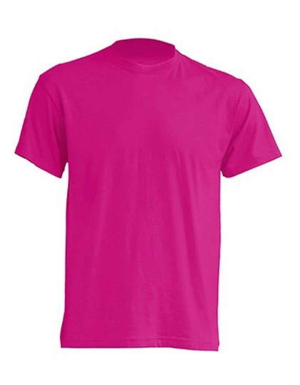 Unisex full cut T-Shirt, Schlauchware ohne Seitennähte. Doppelnähte an Kragen, Bund und Ärmeln, Nackentape von Schulter zu Schulter. Lycra im Bündchen 3XL: BK, NY, RB, WH, RD, OR, SY. Grey Melange: 85% Baumwolle / 15% viskose. Ash Melange: 98% Baumwolle / 2% viskose. Fluor: 100% Polyester. Heather: 65% polyester / 35% Baumwolle. Denim heather: 60% Baumwolle / 40% polyester