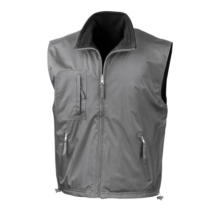 280 g/qm • 100% Polyester, Antipilling-Fleece • Einseitig wasserfest (polyesterbeschichtet) • Hochschließender Kragen • Full Zip • Auf jeder Wendeseite 2 Zip-Taschen • Verlängertes Rückenteil mit orangefarbenem Kordelzug • Veredelungszugang im seitlichen Saum.