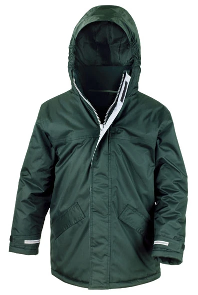 Außen: 100% Polyester (Pongee), mit StormDri Polyurethan-Beschichtung • Wattierung: 160 g/qm, 100% Polyester • Futter: 160 g/qm, 100% Polyester • Kapuze im Kragen mit eingenähtem Gummi an den Seiten • Schwerer Full Zip • 2 Seitentaschen mit Windschutzleiste und warmen Fleece-Futter • Namensschild in linker Innentasche • Windschutzleiste mit Klettverschluss • Reflektierender Streifen hinten über Bund • Durch Klettverschluss verstellbare Ärmelbündchen • Reflektierende Streifen am Ärmelabschluss • Verstellbarer Kordelzug im Bund (EN14682 entsprechend).