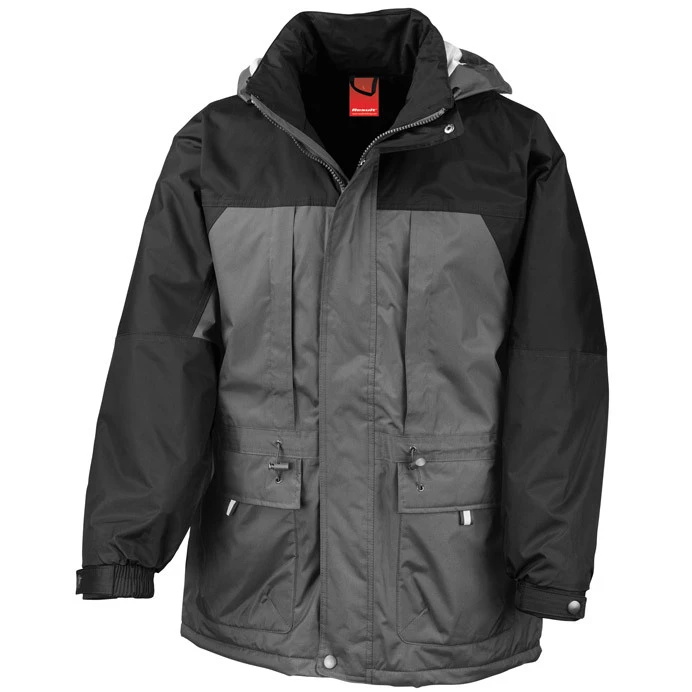 Außen: 200 g/qm, 100% Polyester mit PVC-Beschichtung • Wattierung: 180 g/qm, 100% Polyester • Wind- und wasserdicht (versiegelte Nähte) • 3M™ Scotchlite™ reflektierende Akzente • Abnehmbare, gefütterte Kapuze • 2-Wege-Zip mit Windblende • 10 verschiedene Taschen • Verstellbare Ärmelabschlüsse • Elastischer Kordelzug in Taille • Im unteren Rückenbereich ein Thinsulate™ Sitzkissen zum Herausnehmen • Veredelungszugang im Brustbereich und Rücken.