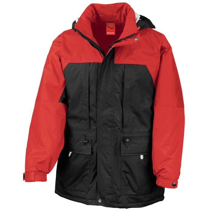 Außen: 200 g/qm, 100% Polyester mit PVC-Beschichtung • Wattierung: 180 g/qm, 100% Polyester • Wind- und wasserdicht (versiegelte Nähte) • 3M™ Scotchlite™ reflektierende Akzente • Abnehmbare, gefütterte Kapuze • 2-Wege-Zip mit Windblende • 10 verschiedene Taschen • Verstellbare Ärmelabschlüsse • Elastischer Kordelzug in Taille • Im unteren Rückenbereich ein Thinsulate™ Sitzkissen zum Herausnehmen • Veredelungszugang im Brustbereich und Rücken.