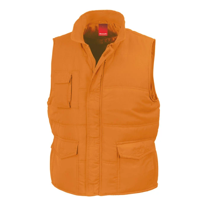 Außen: 100% Polyester • Innenfutter: 100% Nylon (190T) • Wattierung: 200 g/qm, 100% Polyester, quergesteppt • Weiter Armausschnitt • Verdeckter Full Zip mit Windschutzleiste • Aufgesetzte Handy-Brusttasche • Aufgesetzte Taschen mit Klappe sowie zusätzlichem seitlichem Eingriff • Innentasche • Verlängertes Rückenteil • Veredelungszugang auf linker Brustseite.