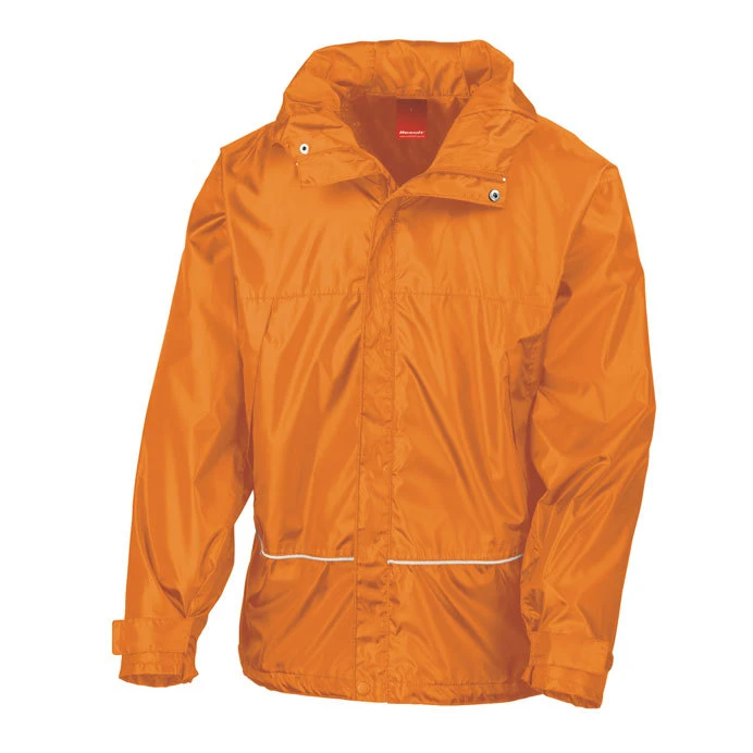 Außen: 100% Polyester mit Polyurethan-Beschichtung • Futter: 65 g/qm Nylon (Tafetta®) • Wasser- und winddicht • Kapuze • Full Zip mit Windschutzleiste • Ärmelbündchen verstellbar mit Klettverschluss • Verdeckte Zip-Taschen • Reflektierende Paspelierung im unteren Rumpfbereich • Für Transferdruck geeignet.