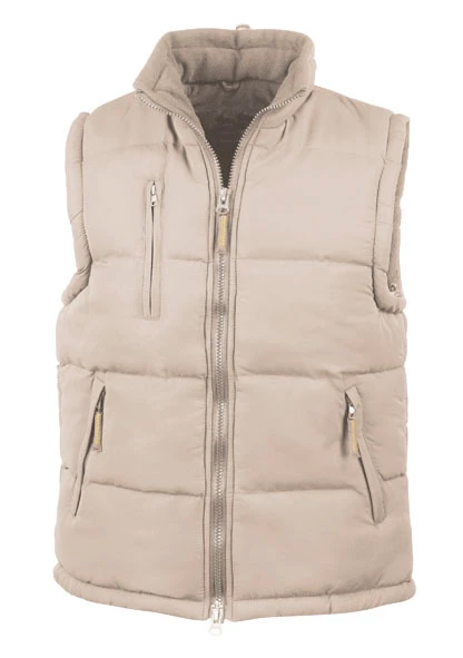 Außen: 100% Polyester (Mikrofaser) • Wattiertes Innenfutter: 100% Polyester (Fleece) • Kapuze im Kragen • Quergesteppter Body • Zweiwege-Zip • Seitentaschen und Brusttasche rechts mit Zip • Armausschnitte und Bund durch Kordelzug mit Stoppern verstellbar • Veredelungszugang auf linker Brustseite und im Rücken.
