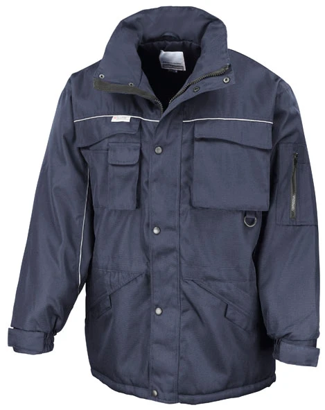 Außen: 100% Nylon (600D Taslan Oxford) mit PU-Beschichtung • Innenfutter: Oberteil 100% Polyester (Fleece) • Unterteil 100% Nylon (190T Taffeta®) • Wattierung: 160 g/qm, 100% Polyester • Verstärkte Nähte • Verdeckter Zip mit Druckknöpfen • Elastischer Kordelzug mit Stoppern in Taille • Reflektierende Paspel auf Brust und Ärmeln • Veredelungszugang im Rücken.