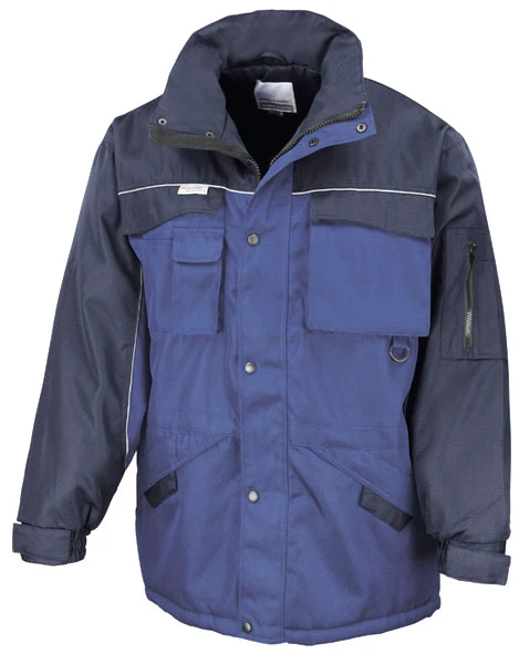 Außen: 100% Nylon (600D Taslan Oxford) mit PU-Beschichtung • Innenfutter: Oberteil 100% Polyester (Fleece) • Unterteil 100% Nylon (190T Taffeta®) • Wattierung: 160 g/qm, 100% Polyester • Verstärkte Nähte • Verdeckter Zip mit Druckknöpfen • Elastischer Kordelzug mit Stoppern in Taille • Reflektierende Paspel auf Brust und Ärmeln • Veredelungszugang im Rücken.