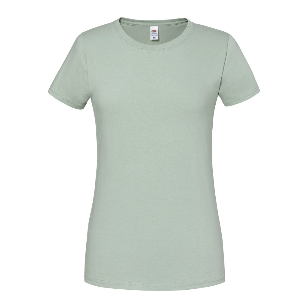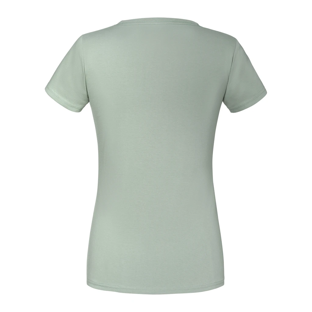 Material: 100% Baumwolle Heather Grey: 97% Baumwolle, 3% Polyester; Ash 99% cotton, 1% polyester; Gewicht: 195 g/m² (weiß: 190 g/m²); 100 % gekämmte, ringgesponnene Baumwolle, weiche Haptik, geformte Seitennähte für eine feminine Passform, waschbeständig bei 60 Grad, Rundhalsausschnitt mit Baumwoll-/LYCRA®-Rippstrick und Doppelnähten, Schulter-zu-Schulter-Tape aus dem gleichen Stoff; Zertifikate: STANDARD 100 by OEKO-TEX®; WRAP