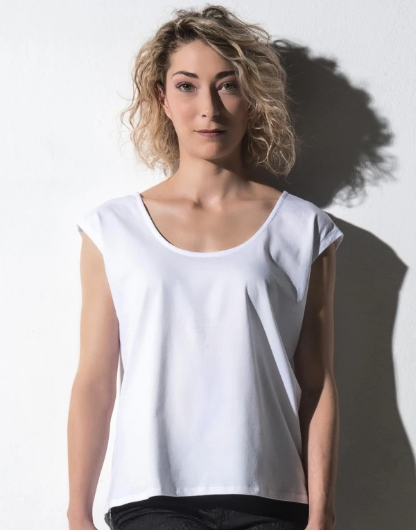 Tiefer Rundhalsausschnitt mit Paspelierung innen