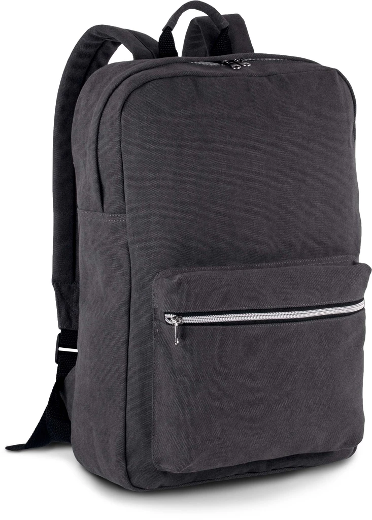 Rucksack aus Baumwollcanvas mit kontrastfarbenen Reißverschlüssen im Metall-Look. Gepolstertes RV-Innenfach für Tablet oder Notebook bis 13‘‘. Gepolsterte Gurte und Rückenteil. RV-Tasche mit Seitenfalte vorne, um die Veredelung zu erleichtern.