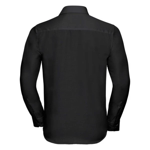 Gewicht:120 g/m²; Material: 100% Baumwolle (Micro-Twill); Tailliertes absolut bügelfreies Hemd – Langarm; Absolut bügelfrei, Langarm, Stäbchen-verstärkter, halb ausgestellter Kragen, Rückwärtige Schulterpasse, Ton-in-Ton Knöpfe, Abgeschrägte mit 2 Knöpfen verstellbare Manschetten (wahlweise mit Manschettenknöpfen tragbar), Taillierter Schnitt, Abgerundeter Saum, Ersatzknöpfe. Zertifikate: STANDARD 100 by OEKO-TEX®; WRAP