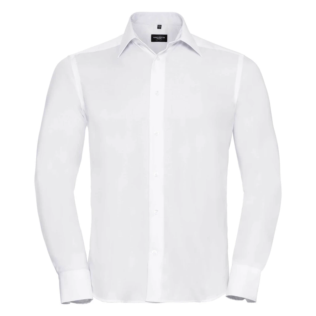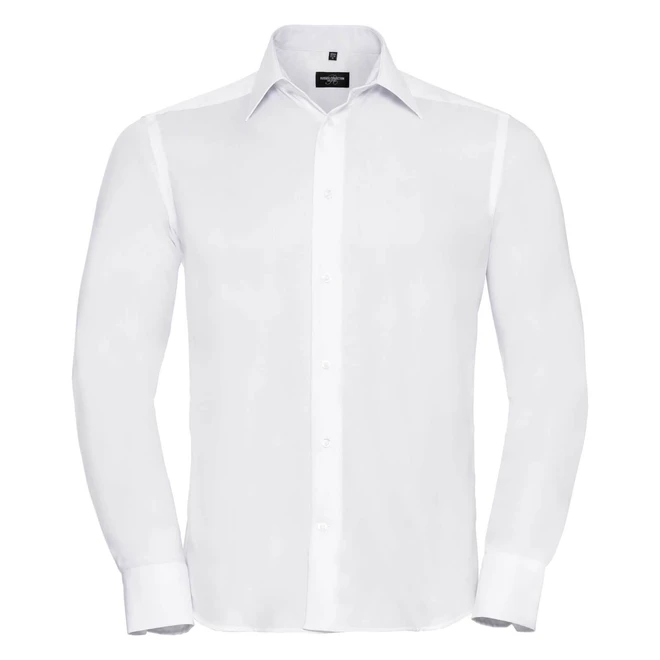 Gewicht:120 g/m²; Material: 100% Baumwolle (Micro-Twill); Tailliertes absolut bügelfreies Hemd – Langarm; Absolut bügelfrei, Langarm, Stäbchen-verstärkter, halb ausgestellter Kragen, Rückwärtige Schulterpasse, Ton-in-Ton Knöpfe, Abgeschrägte mit 2 Knöpfen verstellbare Manschetten (wahlweise mit Manschettenknöpfen tragbar), Taillierter Schnitt, Abgerundeter Saum, Ersatzknöpfe. Zertifikate: STANDARD 100 by OEKO-TEX®; WRAP