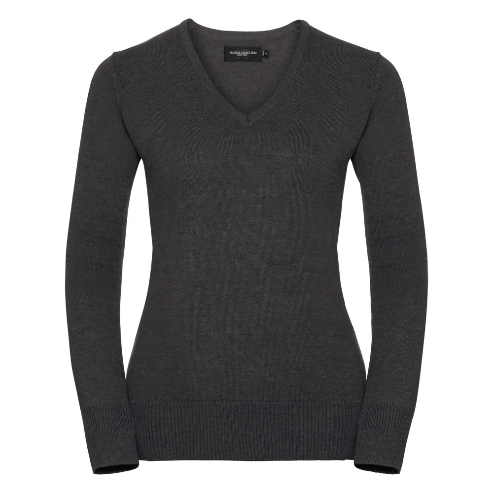 Gewicht: 275 g/m²; Material: 50% Baumwolle, 50% Polyacryl; Ladies’ Pullover; Glattgestrickt, V-Ausschnitt mit Rippstrickbündchen, Ärmelabschluss und Bund mit breitem Rippstrickbündchen, Seitennähte. Zertifikate: STANDARD 100 by OEKO-TEX®; WRAP