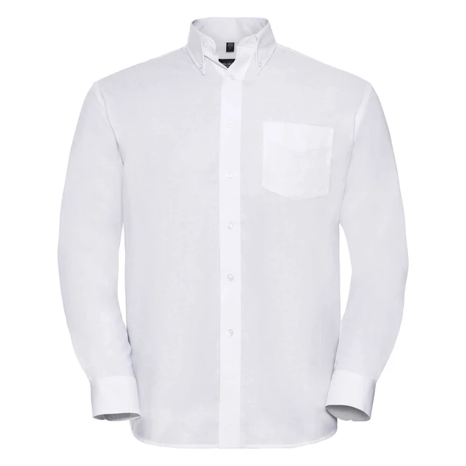 Gewicht: 135 g/m² (White: 130 g/m²); Material: 70% Baumwolle, 30% Polyester (Oxford); Oxford Hemd LA; Langarm, Button-Down-Kragen, Rückwärtige Schulterpasse mit 2 an den Seiten eingelegten Falten, Mit 2 Knöpfen verstellbare abgerundete Manschetten, dazu ein Knopf auf dem Manschettenaufschlag, V-förmig zulaufende Tasche vorne links, Klassischer Schnitt, Abgerundeter Saum, Ersatzknöpfe, Pflegeleicht (Easy Care). Zertifikate: STANDARD 100 by OEKO-TEX®; WRAP