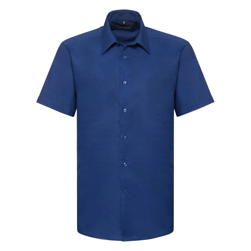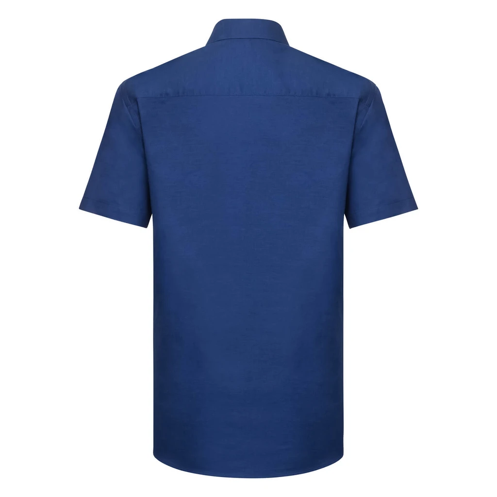 Tailliertes Oxford Hemd – Kurzarm; Stäbchen-verstärkter, halb ausgestellter Kragen, Ton-in-Ton Knöpfe, Doppelt umgelegter Ärmelsaum, Tailliert geschnitten, Abgerundeter Saum, Ersatzknöpfe, Pflegeleicht (Easy Care). Zertifikate: STANDARD 100 by OEKO-TEX®; WRAP