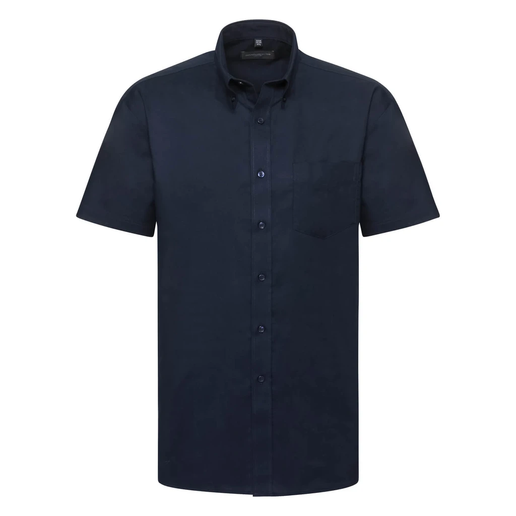 Weight: 135 g/m² (White: 130 g/m²); Material: 70% Baumwolle, 30% Polyester (Oxford); Klassisches Oxford Hemd – Kurzarm; Button-Down-Kragen, Rückwärtige Schulterpasse mit 2 an den Seiten eingelegten Falten, V-förmig zulaufende Tasche vorne links, Klassischer Schnitt, Abgerundeter Saum, Ersatzknöpfe, Pflegeleicht (Easy Care). Zertifikate: STANDARD 100 by OEKO-TEX®; WRAP