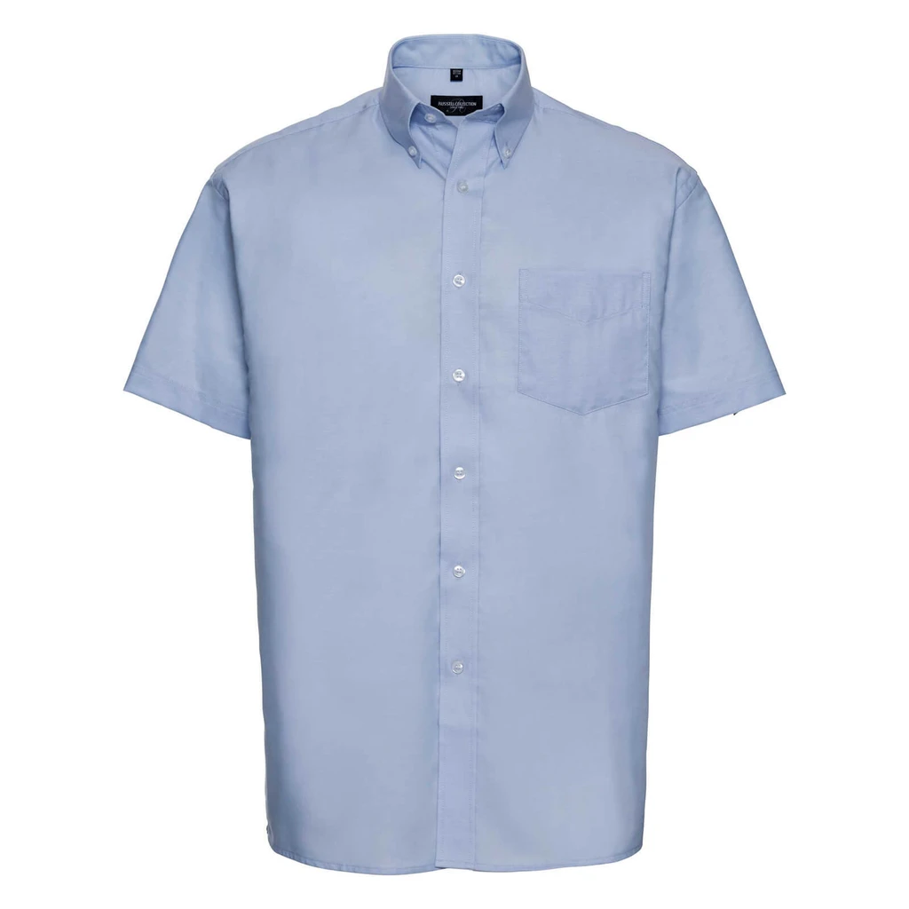 Weight: 135 g/m² (White: 130 g/m²); Material: 70% Baumwolle, 30% Polyester (Oxford); Klassisches Oxford Hemd – Kurzarm; Button-Down-Kragen, Rückwärtige Schulterpasse mit 2 an den Seiten eingelegten Falten, V-förmig zulaufende Tasche vorne links, Klassischer Schnitt, Abgerundeter Saum, Ersatzknöpfe, Pflegeleicht (Easy Care). Zertifikate: STANDARD 100 by OEKO-TEX®; WRAP
