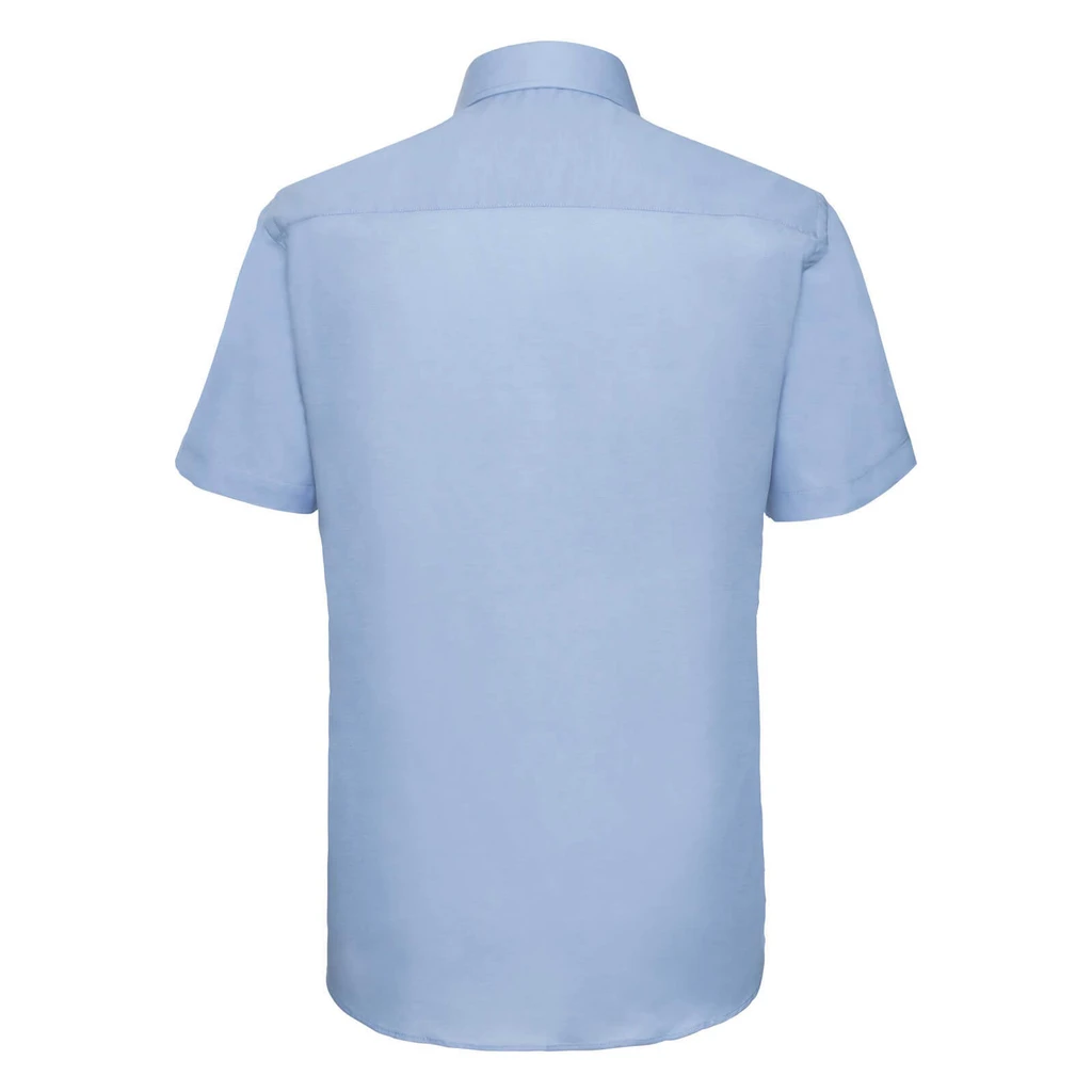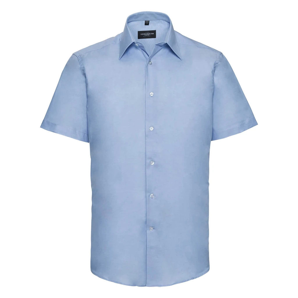 Tailliertes Oxford Hemd – Kurzarm; Stäbchen-verstärkter, halb ausgestellter Kragen, Ton-in-Ton Knöpfe, Doppelt umgelegter Ärmelsaum, Tailliert geschnitten, Abgerundeter Saum, Ersatzknöpfe, Pflegeleicht (Easy Care). Zertifikate: STANDARD 100 by OEKO-TEX®; WRAP